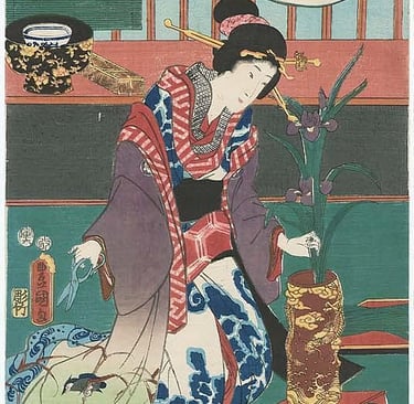 As centuries passed, Ikebana developed new layers of meaning and style. In the Edo period (1603-1868), tatehanna evolved into the elaborate style rikka (立花) , which adorned samurai residences as ceremonial displays. Yet Ikebana was not reserved for the elite; simpler forms like nageirebana (抛入れ花) and seika (生花) became popular in the more modest machiya townhouses (町家).